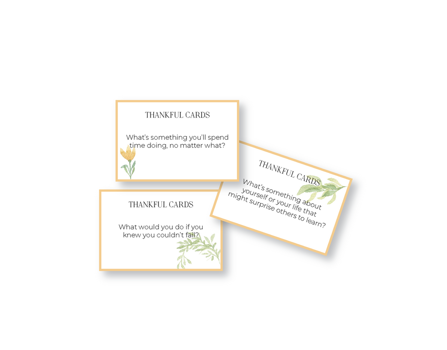 Perfect for passing around the table, choosing at random, and discovering something new about the people you love. Just print on cardstock and cut out as many as you wish . . . then let the conversation unfold!