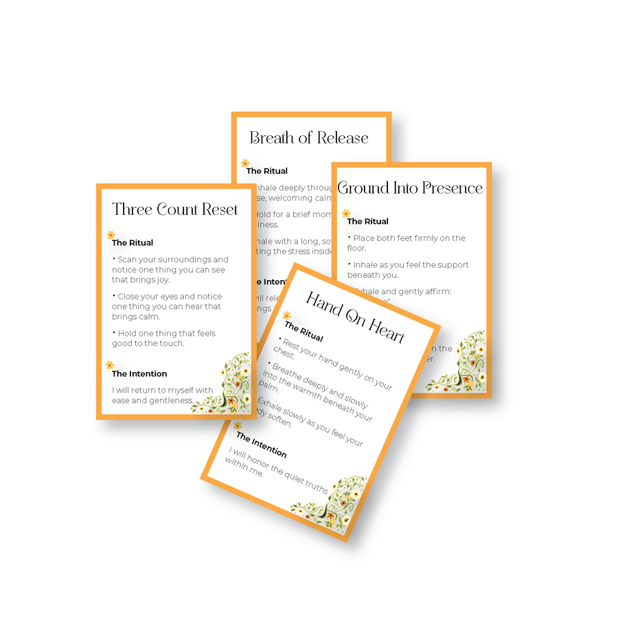 Welcome! I’m so glad you’re here. Below you’ll find a few gentle offerings to help you slow down, breathe, and create a softer, more intentional holiday moment: our beautifully designed Ritual & Intention Cards, a specially curated playlist of soft piano music for your holiday dinner, and wonderfully crafted Thankful Cards. May they bring May they bring warmth, connection, and joy to your table!